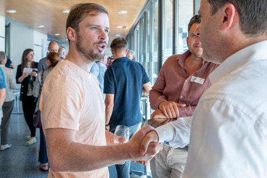 Nach dem Schlusswort vom Zuger Stadtpräsident André Wicki konnte der inspirative Abend in einem geselligen Networking-Apéro reflektiert werden. Gleichzeitig konnten an der ID: Zug (Innovation Desk: Zug) Fachgespräche mit innovativen Unternehmen geführt werden.