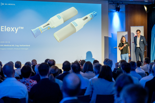 Als die Lichter auf die Bühne zeigten, ging es weiter mit Innovationen «made in Zug»: SHL Medical AG wurde der Zuger Innovationspreis 2025 verliehen. Der mit 10.000 CHF dotierte Preis, der vom Regierungsrat des Kantons Zug vergeben wird, wurde von der Volkswirtschaftsdirektorin Silvia Thalmann-Gut überreicht. Silvia Thalmann-Gut und die Geschäftsführerin des Technologie Forum Zug, Albina Begic, sprachen über die lange Tradition vom Zuger Innovationspreis und der Wichtigkeit von diesem Preis heute. In einer spannenden Kurzpräsentation stellte das Gewinnerunternehmen SHL Medical AG ihre Innovation vor.