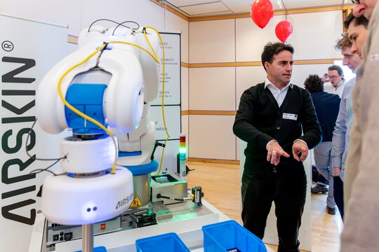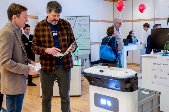 The participating start-ups impressively demonstrated the diversity of this toolbox during their pitches on stage. In the accompanying trade exhibition, our guests were able to experience the innovations from the following start-ups first-hand: Ascento, UniteLabs, coprod LLC, AIRSKIN, red cable robots, Unchained Robotics, LAYERED, Cartken, IONO Robotics